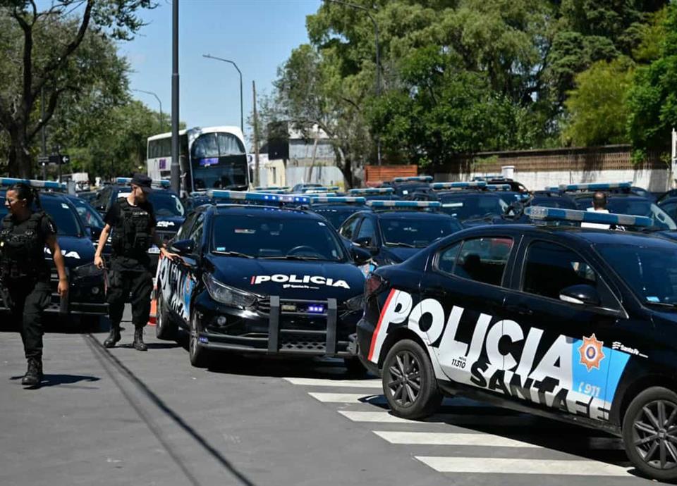 Decenas de motos y patrullas policiales estaban estacionadas en fila y con las sirenas encendidas por horas, cortando el tránsito frente a la sede de la jefatura de la fuerza en la ciudad de Rosario, 300 kilómetros al noroeste de Buenos Aires.