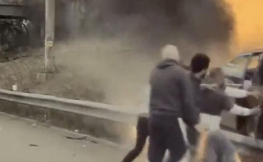 La cámara muestra a Tolla, con una playera gris, unirse a otras personas para tratar de abrir las puertas del vehículo, sin éxito. Tolla tomó un pedazo de plástico que estaba tirado en la carretera, y quería usarlo para romper la ventana, aunque fue finalmente el empleado del Departamento de Transporte quien rompió el vidrio.