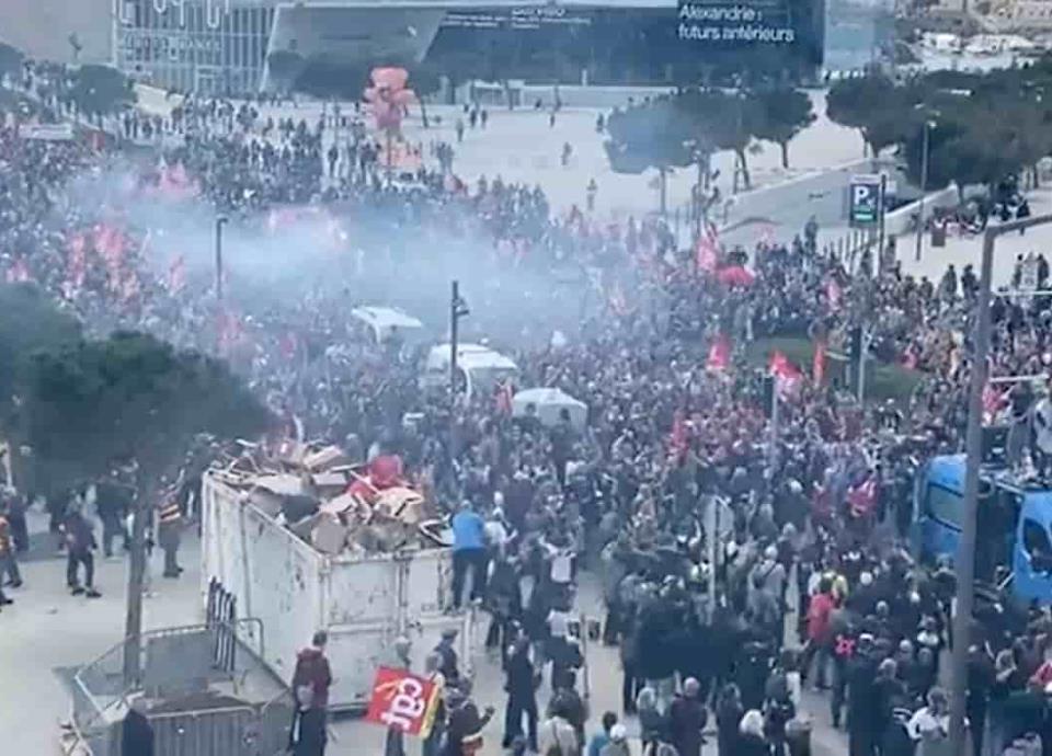 Aprovechando la fuerte participación, los sindicatos convocaron rápidamente a protestas y huelgas para el 28 de marzo, cuando nuevas se tiene previsto que el rey británico visite Burdeos en el segundo día de su gira por Francia. La pesada puerta de madera del elegante Ayuntamiento de Burdeos fue quemada y rápidamente destruida el jueves por la tarde por miembros de una manifestación no autorizada, publicada el periódico Sud Ouest.