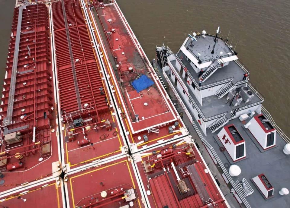 Un video proporcionado a KMOV-TV por un testigo muestra una columna de humo negro elevándose desde la barcaza.