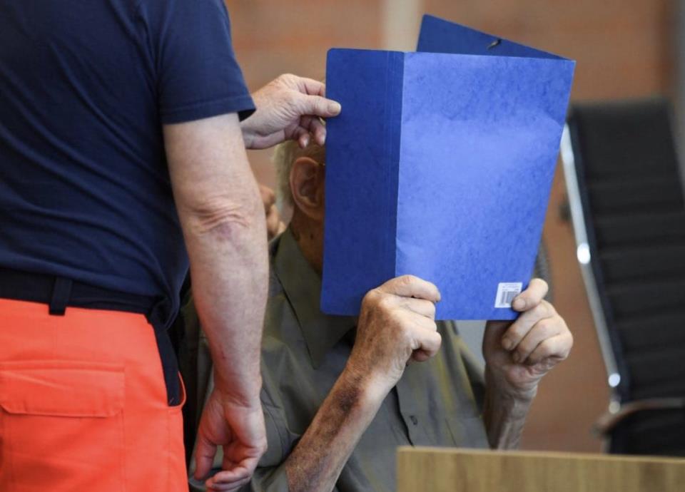 El acusado se tapó el rostro durante el juicio por sus crímenes en la Segunda Guerra Mundial
