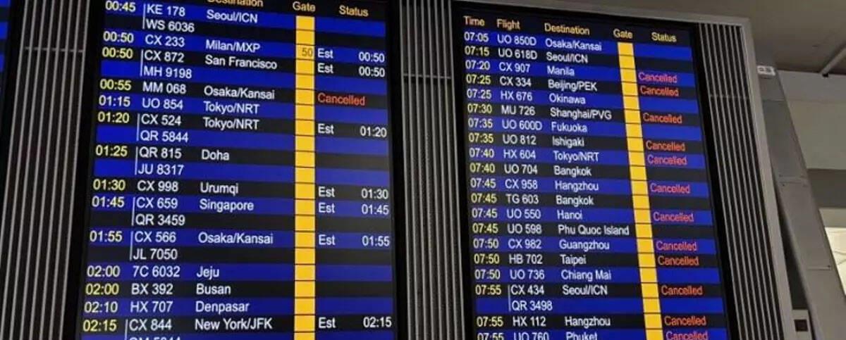 Más de 250 vuelos fueron anulados en Hong Kong, según el sitio internet de su aeropuerto internacional.