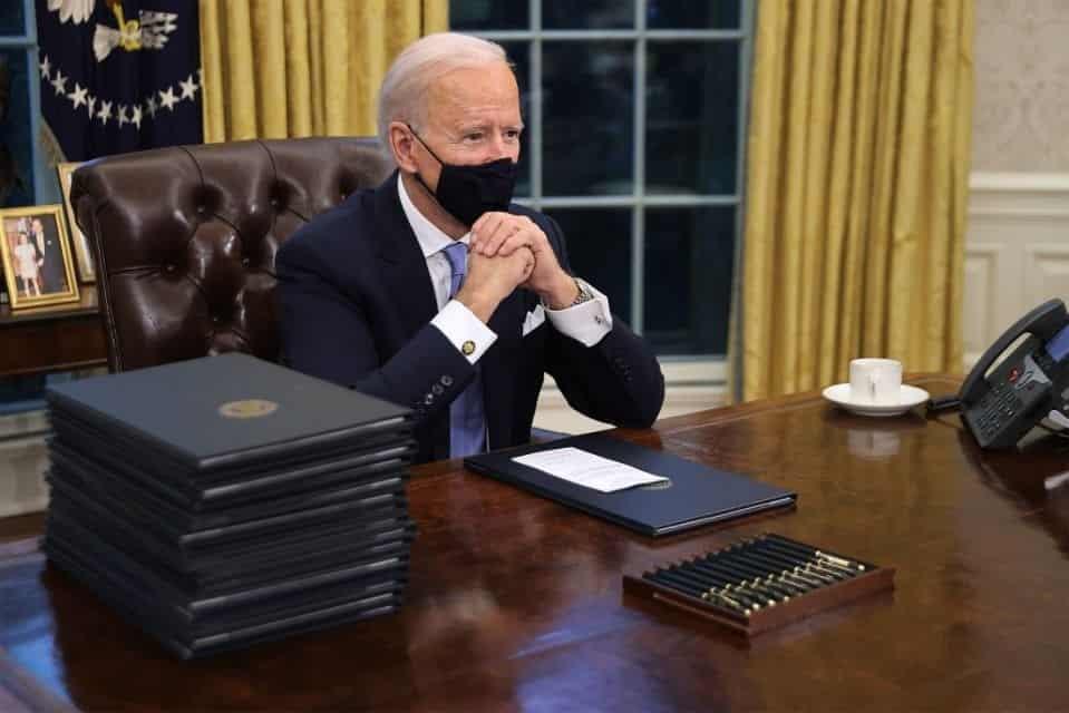 Los comentarios se produjeron después de que Biden firmara tres órdenes ejecutivas, incluida una para el uso obligatorio de mascarillas en instalaciones del Gobierno federal y una medida que regresaría a EE.UU. al Acuerdo de París.