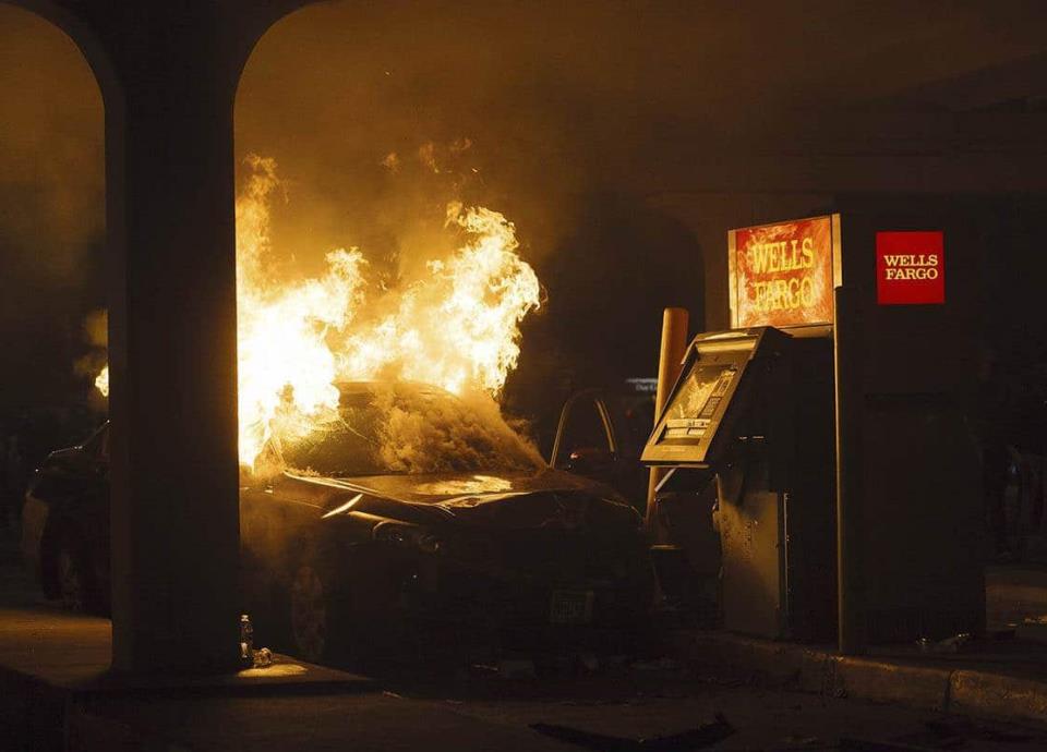 También hubo vehículos policiales quemados y la comisionada del Departamento de Policía, Danielle Outlaw, dijo que al menos van 207 personas arrestadas por los disturbios y saqueos del sábado y domingo.