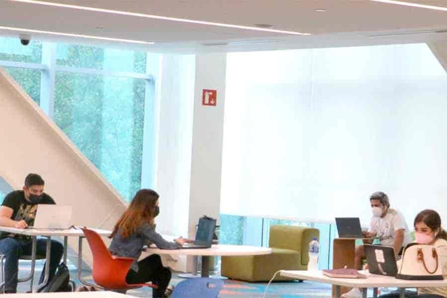 En la Biblioteca también regresaron alumnos, quienes previamente se registraron para acceder, ya sea para tomar clases por Zoom, trabajar en tareas o estudiar.