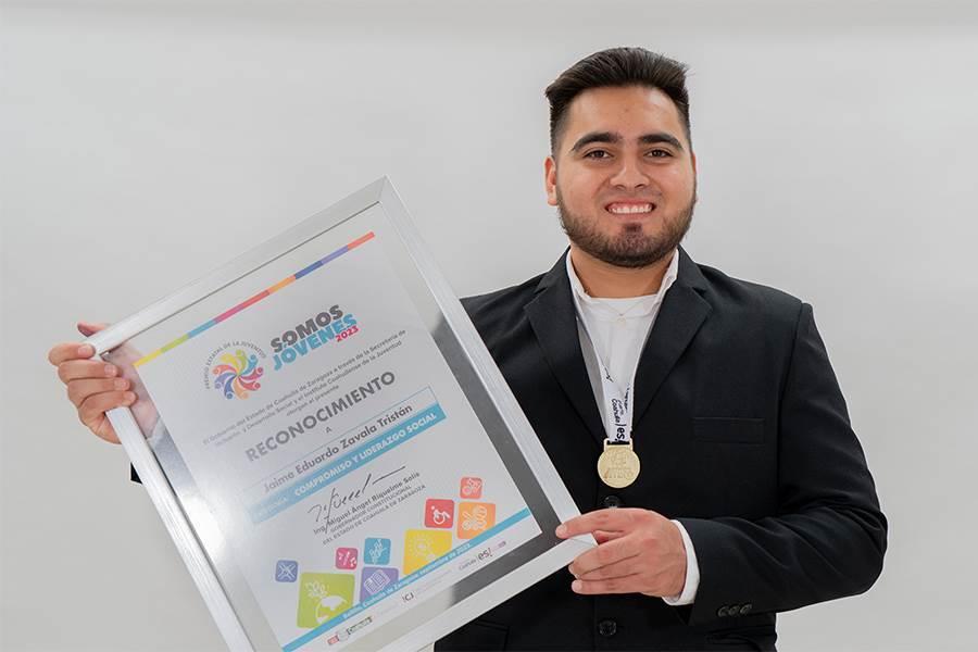 El Premio Estatal de la Juventud 2023 reconoció a 10 coahuilenses en diferentes categorías; Jaime fue seleccionado para la de Compromiso y Liderazgo Social.