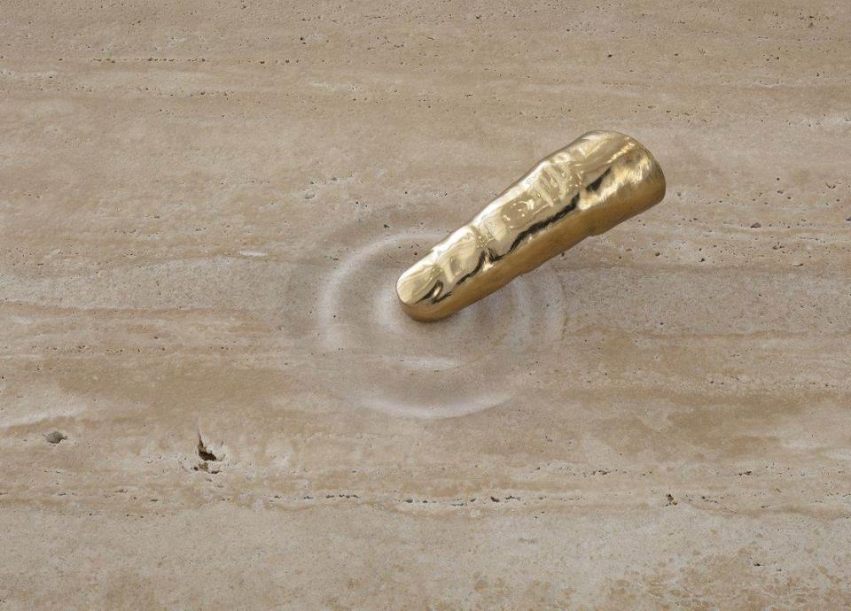 Agregó que otra de las piezas es una versión modificada del dedo, en la que pierde sus características humanas y se muestra achatado, con lo que se crea la ilusión de que toca un límite no material.