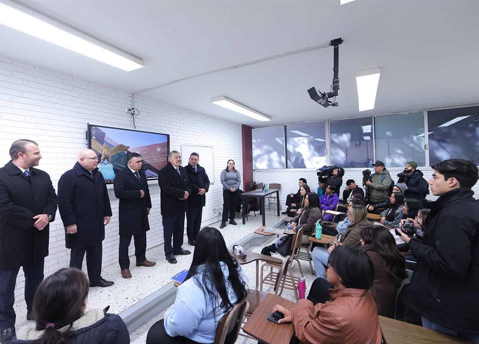 Además de la bienvenida en el municipio de Santiago, el Rector de la UANL visitó la Facultad de Ciencias Políticas y Relaciones Internacionales, donde, acompañado de funcionarios universitarios, aprovechó para dar la bienvenida a los estudiantes en un recorrido guiado por esta dependencia ubicada en el Campus Mederos.