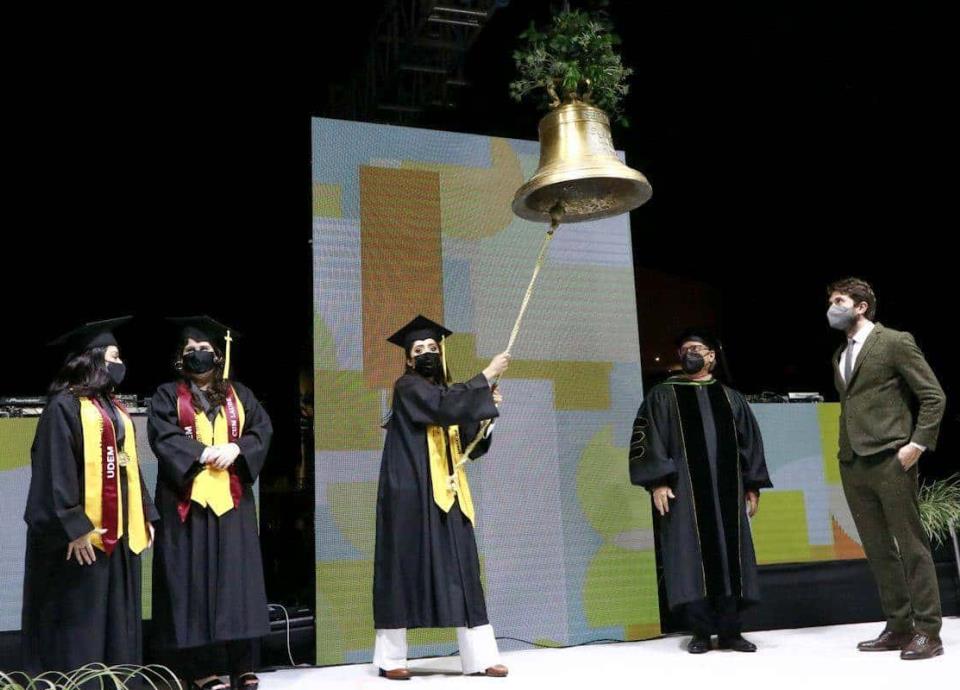 El Commencement UDEM integró los mensajes de los directivos universitarios, incluyendo el del orador huésped, el rito del cambio de borla, el rito del toque de campana Summa Cum Laude y un espectáculo de cierre.