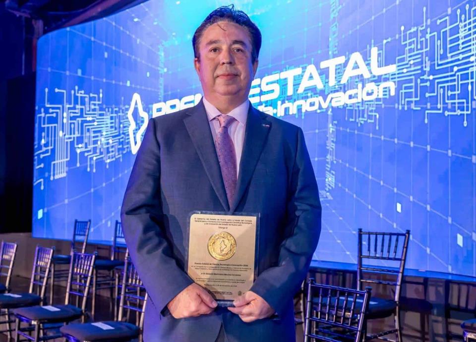 Eduardo Maximiano Sánchez Cervantes, profesor investigador de la Facultad de Ciencias Químicas de la Universidad Autónoma de Nuevo León, fue galardonado con el Premio Estatal de Ciencia, Tecnología e Innovación de Nuevo León 2024.