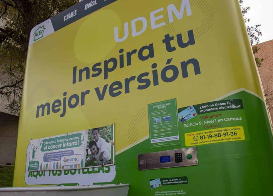 Como parte de su estrategia para la sostenibilidad a través del reciclaje, la Universidad de Monterrey instaló una máquina contenedora de botellas de polietileno tereftalato o PET, con la que la comunidad universitaria podrá reunir puntos e intercambiar por productos de limpieza de la marca Alen.