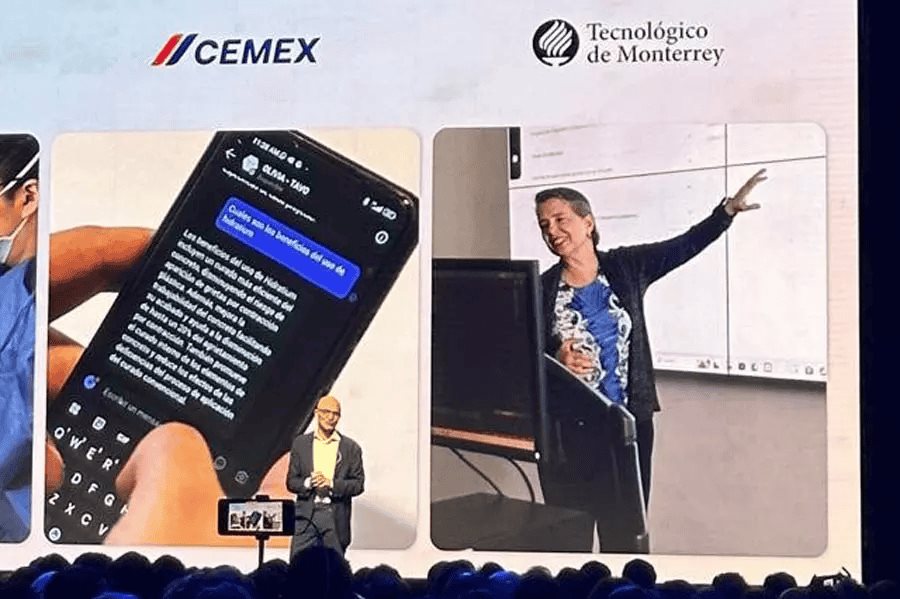 Durante la conferencia también habló de otros ejemplos de implementación de IA, como Grupo Bimbo y Cemex.
