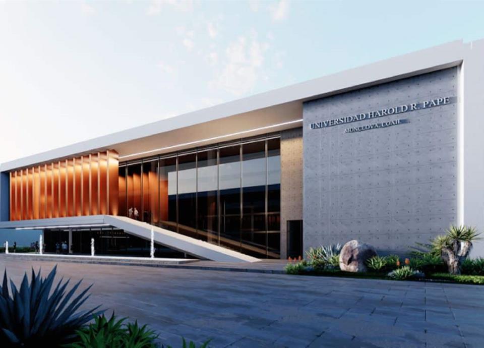 La nueva institución llevaría por nombre "Harold R. Pape", en homenaje a una figura clave en el impulso del desarrollo industrial de la región. El diseño del campus contempla aulas, biblioteca, laboratorios, edificio de rectoría, un ágora y un corredor principal, concebidos como espacios de encuentro, interacción y vinculación con la comunidad.