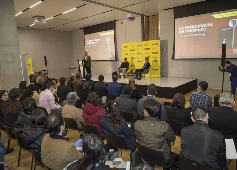 En el marco de dicho lanzamiento, José Woldenberg, ex consejero presidente del Instituto Federal Electoral, ahora Instituto Nacional Electoral, presentó su libro La democracia en tinieblas. Durante el encuentro, realizado en el edificio Estoa de la UDEM, enumeró las características que debe de tener la democracia: “democracia quiere decir un gobierno regulado, no un gobierno caprichoso, para eso están las constituciones y para eso están las leyes. Democracia quiere decir división de poderes, no concentración de poder”, dijo, “democracia quiere decir, también, un gobierno vigilado”.