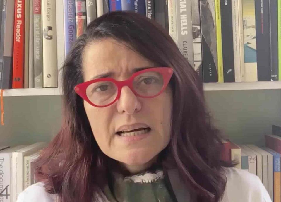 La historiadora de arte y directora del Museo de Arte Contemporáneo (MARCO) entrega en donativo una biblioteca de arte.