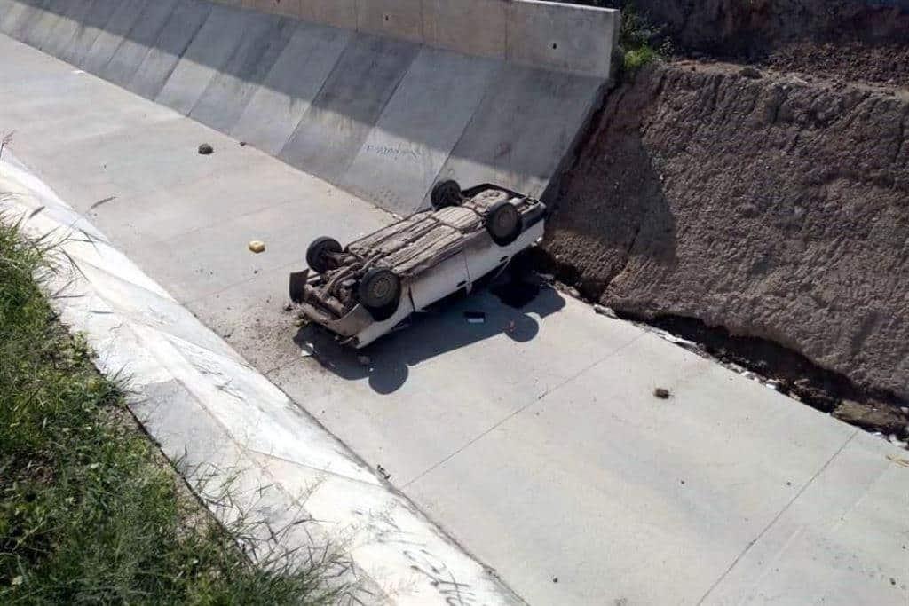 Al descender, observaron que un Nissan Tsuru blanco estaba volcado con las llantas hacia arriba y en el fondo del canalón.