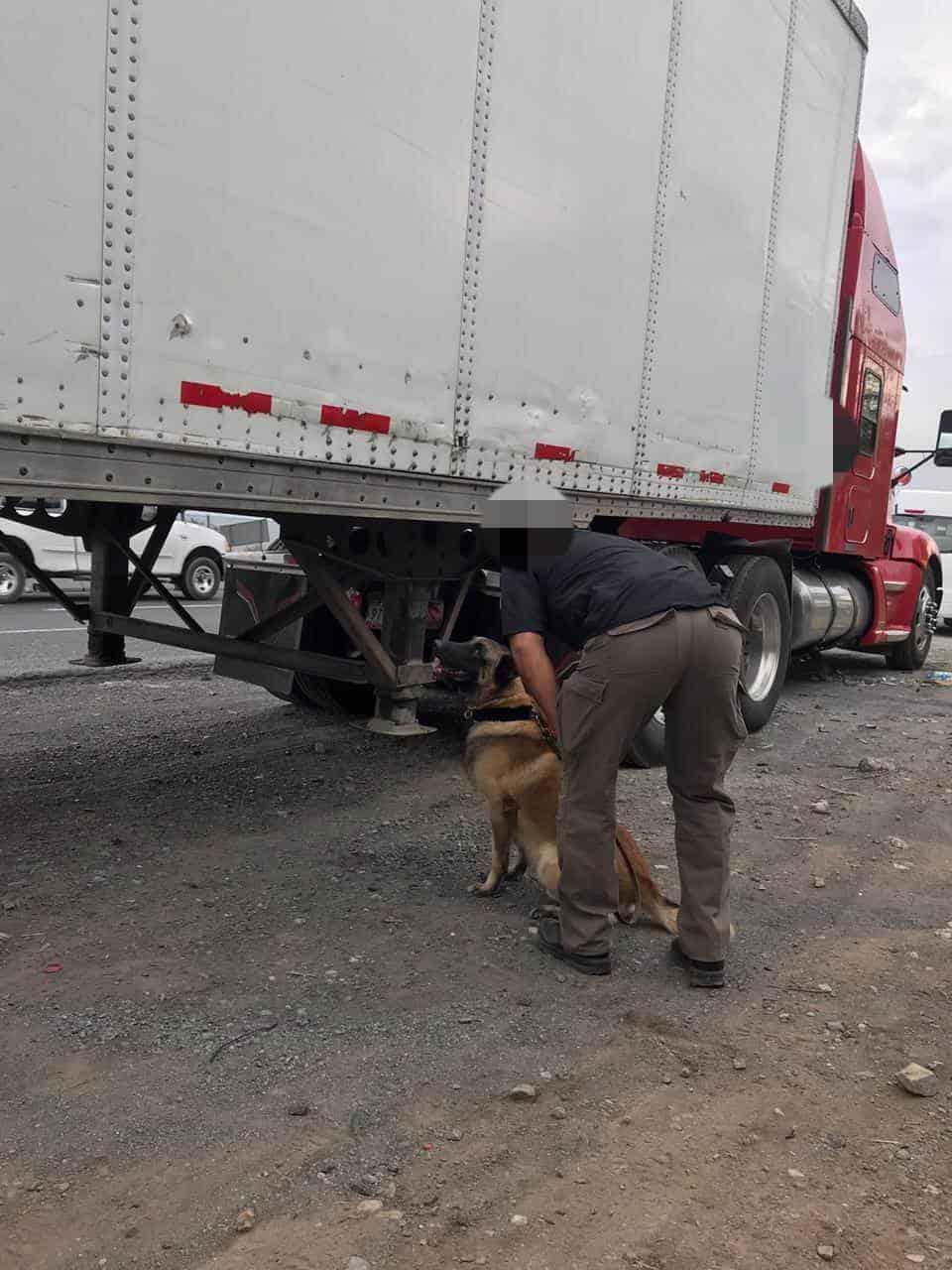 La droga se encontraba en mil 74 paquetes, mismos que fueron ocultados en el piso de la caja del tráiler, y un binomio canino fue el que hizo el hallazgo del cargamento, según un comunicado de la corporación federal.