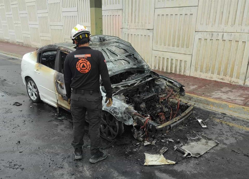 Al parecer fue una falla mecánica lo que dio inicio al siniestro, cuyo fuego se extendió rápidamente hacia toda la estructura del automóvil sedán.