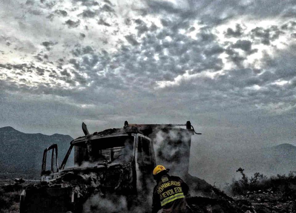 Un tractocamión cargado con varias toneladas de piedras terminó totalmente destruido, al incendiarse cuando se trasladaba al municipio de García.