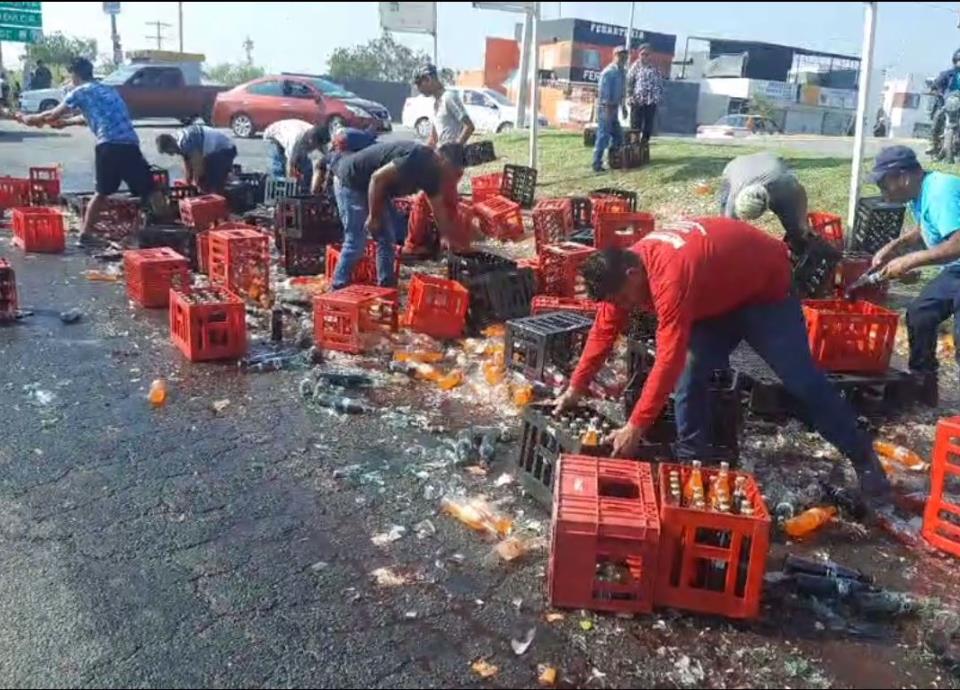En la escena se podría apreciar a motociclistas, amas de casa con niños en brazos y hasta personas de la tercera edad, robando las botellas de refresco.
