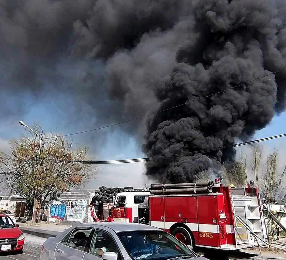Personal de la central de Bomberos de Nuevo León se trasladaron al municipio de Escobedo, al reportarse el incendio de una bodega especializada en el reciclaje de llantas viejas.