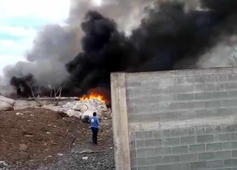 Un incendio donde almacenan plástico y cartón en un terreno bardeado, movilizó a los cuerpos de auxilio que lograron controlar y sofocar el siniestro, en Escobedo.