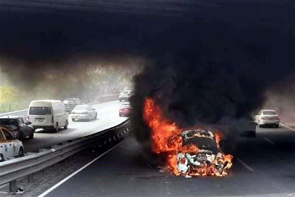 Aparentemente por una falla, que no se ha establecido si fue eléctrico o mecánico, el auto Volkswagen se empezó a incendiar en el carril central de la avenida.