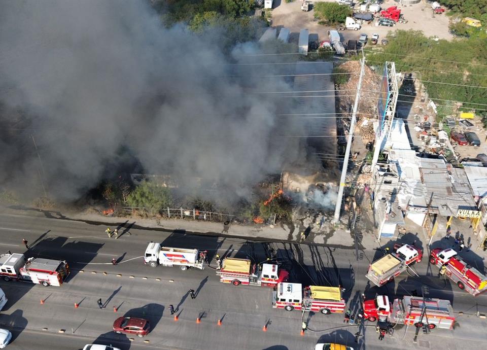 El incendio se registró en una bodega ubicada en Avenida Lincoln y antes de su cruce con Cumbres del Sol, cerca de los límites de Monterrey con García.