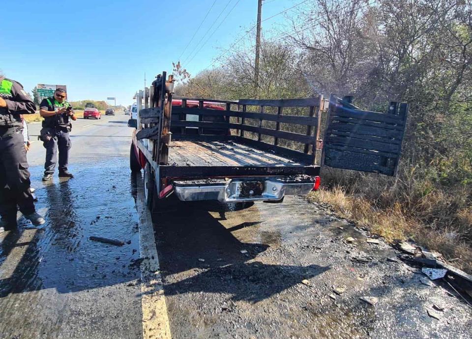 En el incendio se vio afectada una camioneta Nissan, tipo estaquitas, con placas de circulación del Estado de Nuevo León.