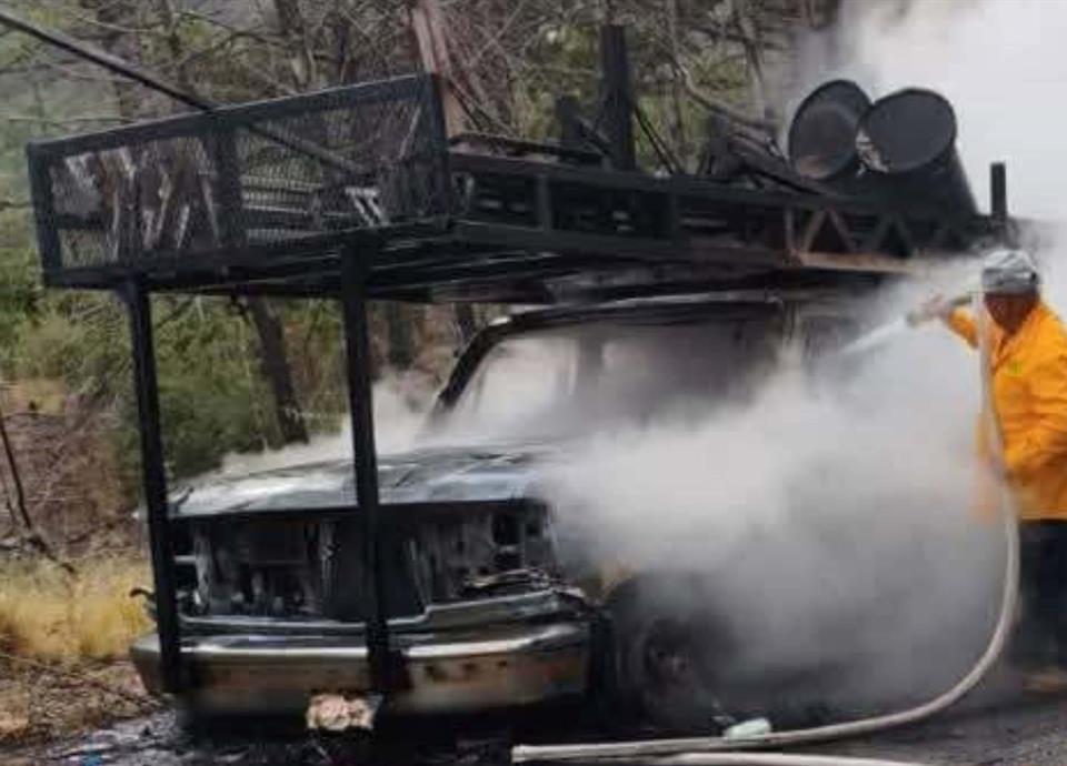Mencionaron que al parecer fue una falla mecánica, lo que provocó el siniestro, que se extendió rápidamente a toda la carrocería de la troca.