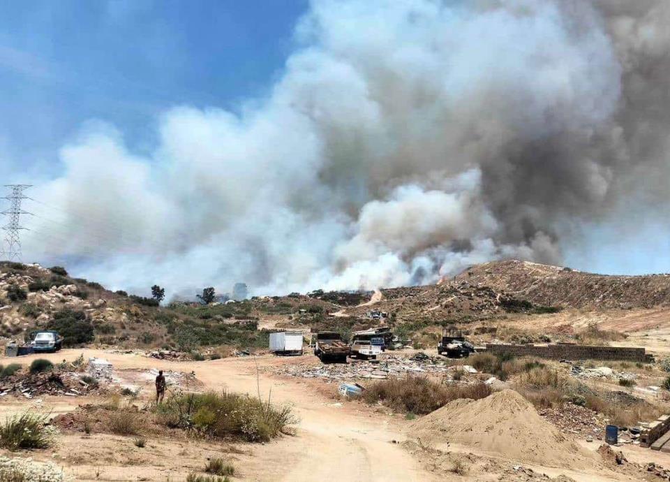 Las altas temperaturas y el sol candente ocasionaron un incendio en el interior del relleno sanitario del municipio de Montemorelos.
