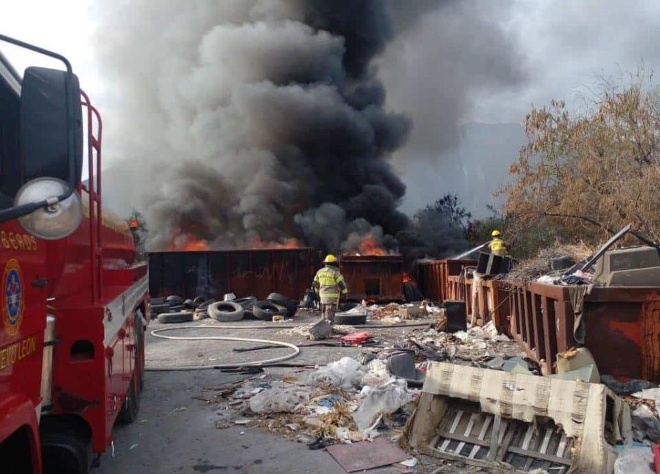 Personal de la central de Bomberos de Nuevo León se movilizó hacia la Colonia Plutarco Elías Calles, al norte de la ciudad, al reportarse el incendio de tres contenedores de basura.