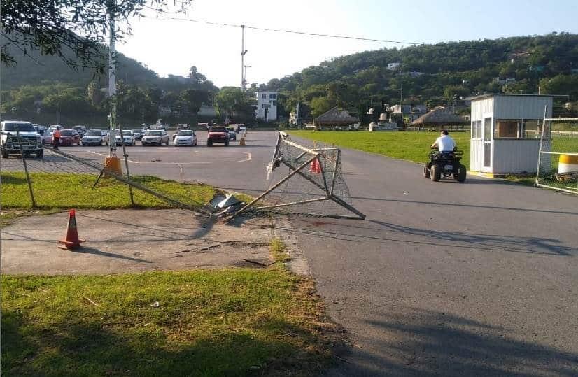 Mencionaron que a su paso derribó la malla ciclónica y alcanzó a golpear a algunos trabajadores.