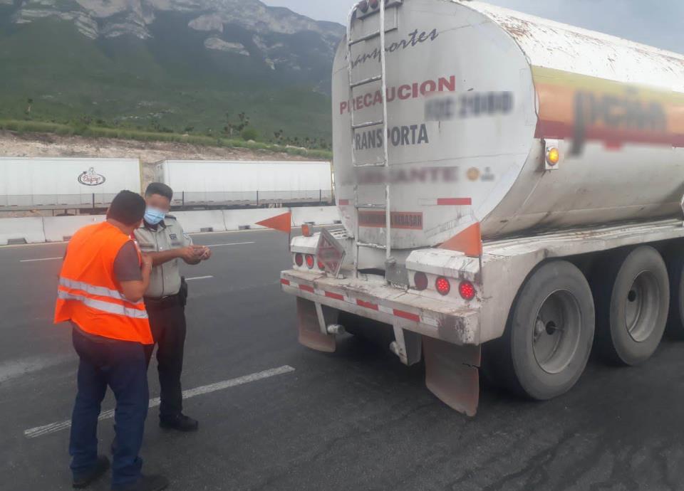 La segunda acción se registró también sobre el kilómetro 82de la Carretera Saltillo-Monterrey, donde los guardias nacionales observaron que el conductor de un tractocamión acoplado a semirremolque tipo tanque no portaba el cinturón de seguridad.