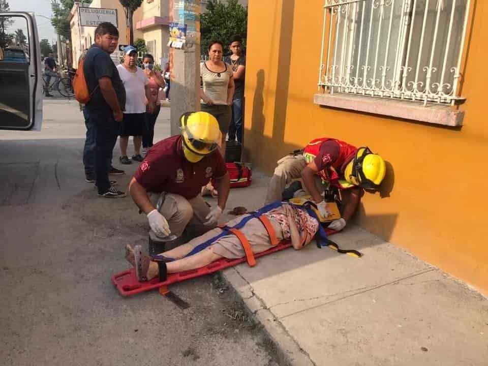 Una mujer de la tercera edad terminó con lesiones de consideración, al ser atropellada por una motocicleta en el centro de Montemorelos.