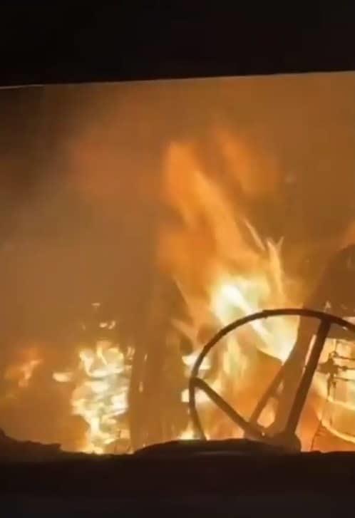 Al terminar de controlar el fuego, se percataron que olía a carne quemada, descubriendo en el asiento posterior los cuerpos, al parecer de dos personas.