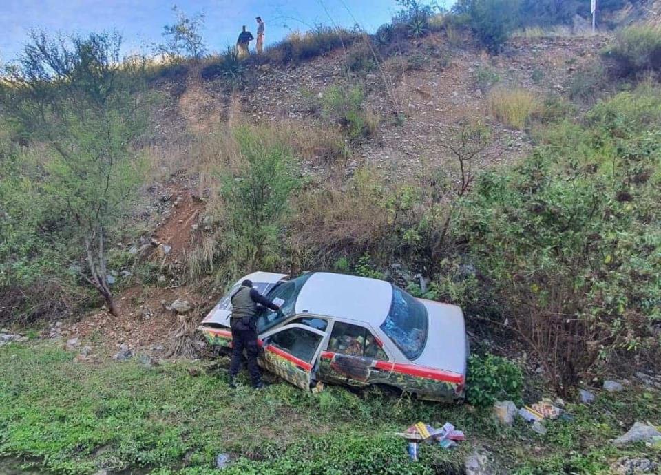 Esto hizo que el auto compacto cayera al fondo de un barranco de al menos 12 metros aproximadamente.