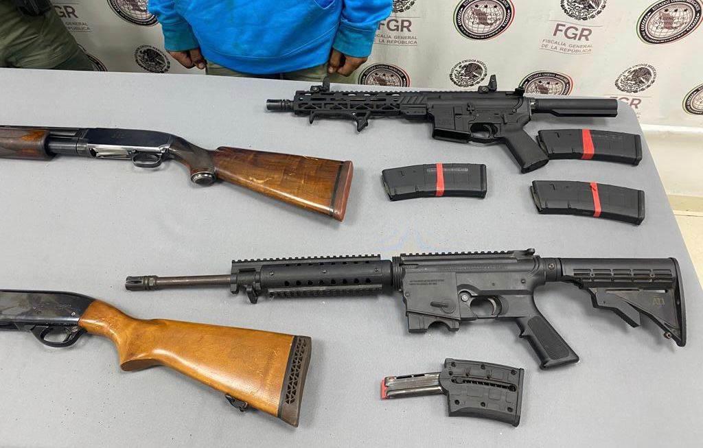 Elementos de la Policía Federal Ministerial (PFM) de la Fiscalía General de la República (FGR) en Nuevo León, detuvieron a Mark “M” tras asegurarle armas de fuego.