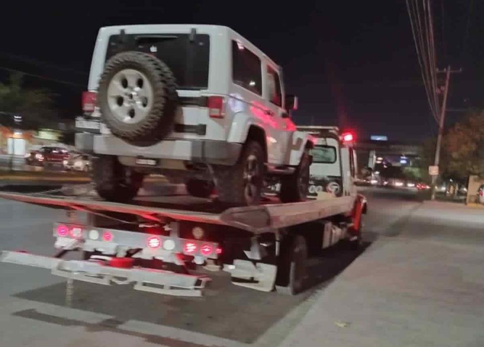Al pedirle que descendiera para hacerle una revisión, al sospechoso le encontraron al interior de una Jeep Rubicon con placas TML1145, una caja con las bolsas de plástico