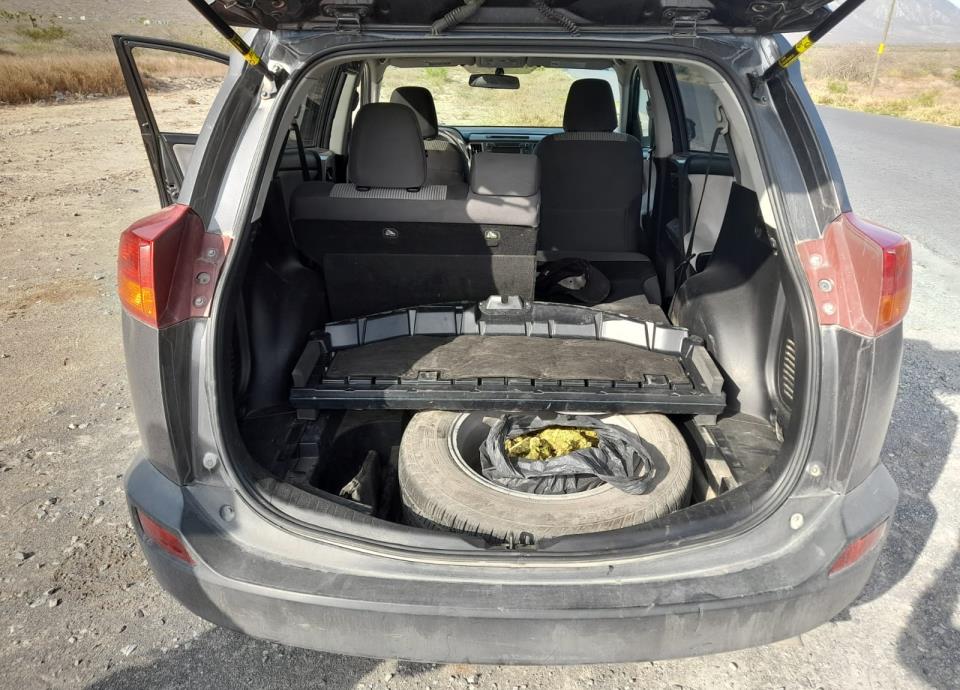 Con más de un kilo de mariguana guardada en la cajuela de su camioneta, un presunto narcomenudista fue detenido, tras ser interceptado realizando una necesidad fisiológica junto a un vehículo en la Carretera a Icamole, municipio de García.