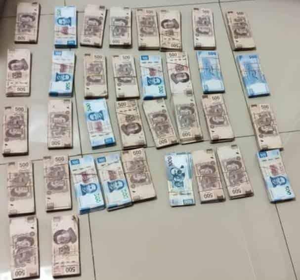 Al efectuar una revisión a la mochila, localizaron varios paquetes que contenían billetes en denominaciones de 500 y 1,000 pesos mexicanos, dando un aproximado de 1 millón 700 mil pesos.