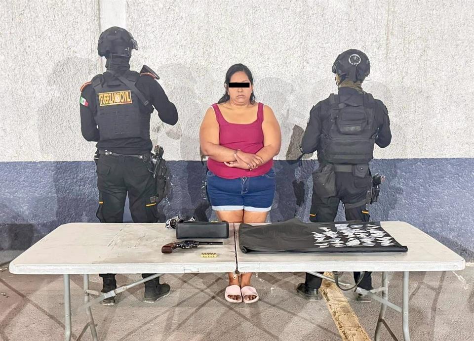 Una simple denuncia por alterar el orden público, llevó a una mujer a ser detenida en posesión de un arma de fuego y droga por oficiales de Fuerza Civil, en la Colonia Pablo González, en Monterrey.
