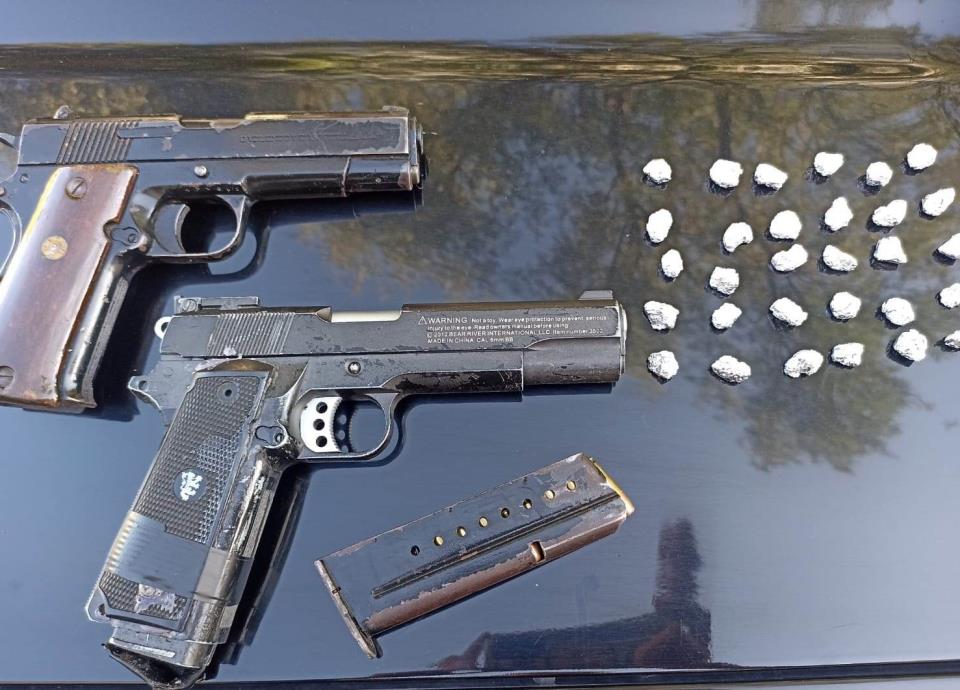 Elementos de Fuerza Civil detuvieron en Sierra Ventana, municipio de Monterrey, a un hombre apodado ‘El Yuma”, portando dos armas de fuego cortas y droga.