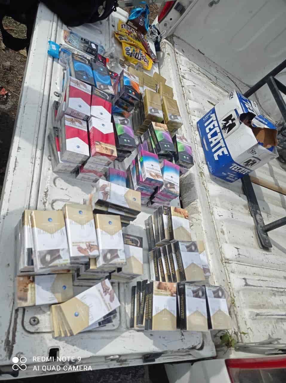 Sin embargo, fueron detenidos minutos después, y al revisar el vehículo se encontró el producto robado en la tienda de conveniencia, tales como cajetillas de cigarros, cerveza y dinero en efectivo.