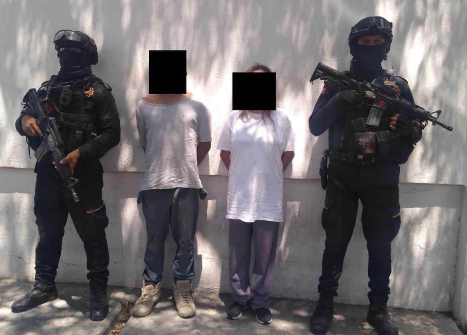 Tras capturar al par de presuntos delincuentes, les decomisaron un rifle, radiofrecuencias, droga y dinero en efectivo.