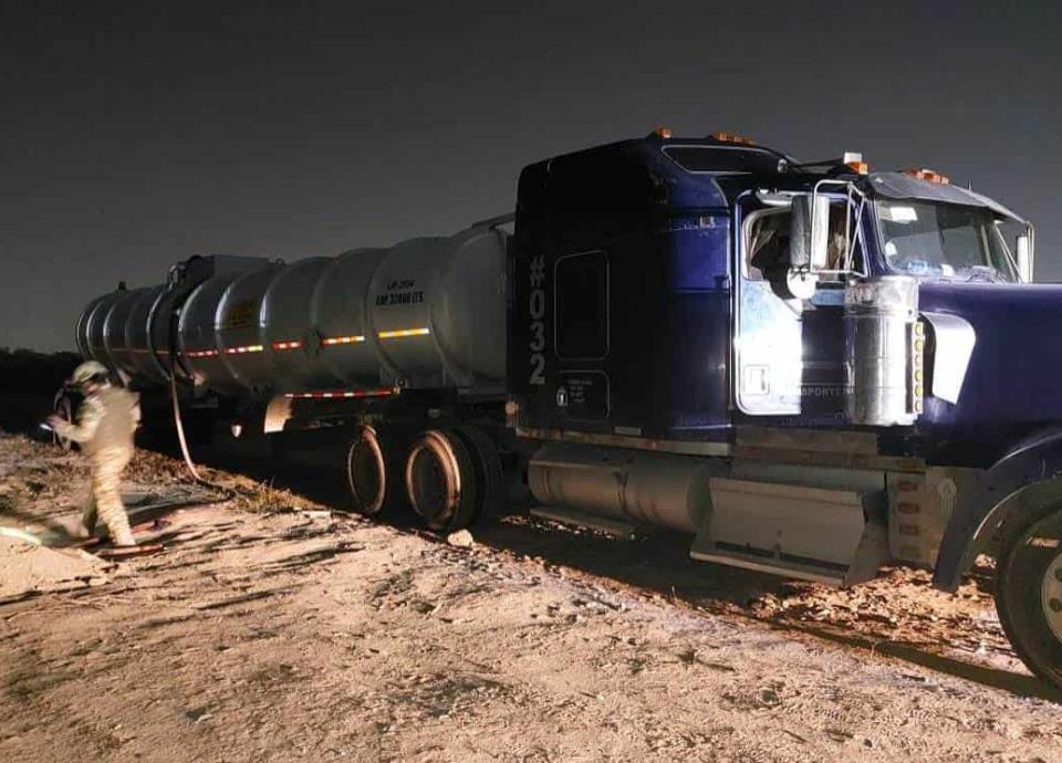 Los oficiales observaron más adelante un tracto camión, el cual estaba conectado a una manguera a los ductos de PEMEX.