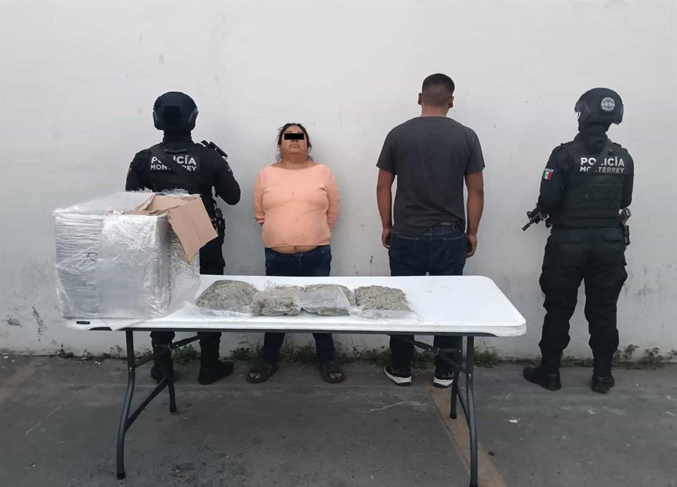Tras detener a una mujer y su hijo por oficiales de la Policía de Monterrey, al encontrarles droga al salir de un domicilio en la Colonia Nueva Madero, la vivienda fue cateada por la Fiscalía de Justicia.