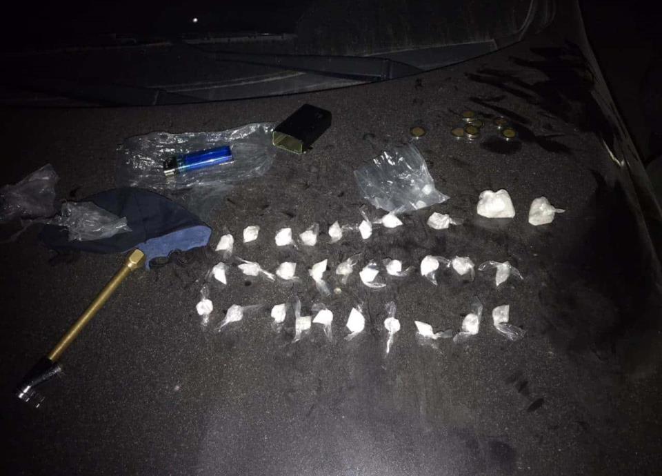 Entre la mercancía decomisada se encontraban 30 dosis de “cristal” y una báscula gramera.