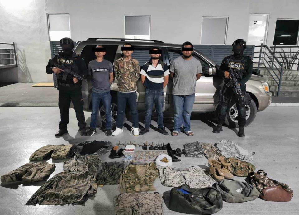 Un grupo armado conformado por cuatro adultos y un menor de edad, presuntos integrantes de un grupo criminal, fueron arrestados el miércoles por elementos de Fuerza Civil en el municipio de Anáhuac y les aseguraron armas largas y droga.