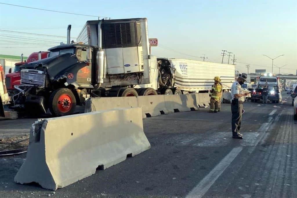 En el aparatoso accidente, solo participaron vehículos de quinta rueda, que bloquearon por completo la vialidad